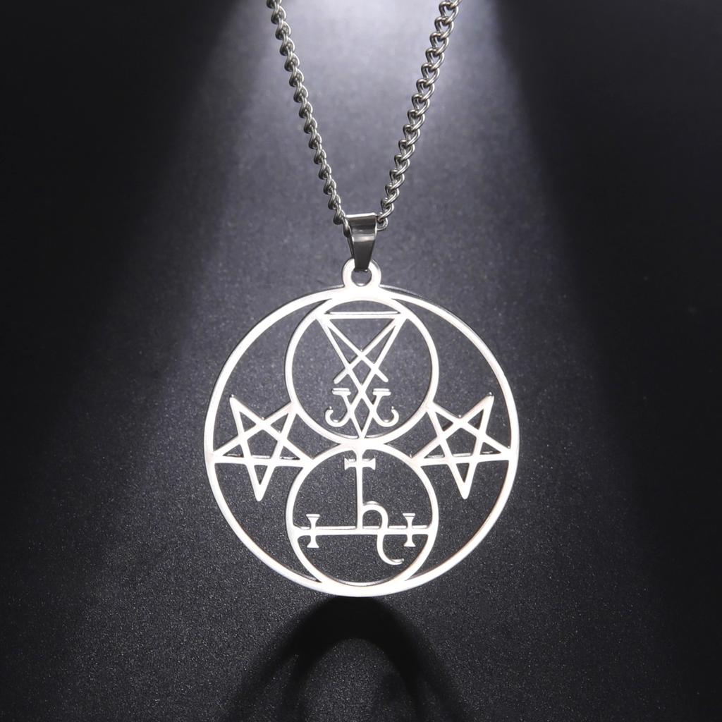 Lucifer Lilith Doppelsiegel Anhänger Halskette Satanisches Pentagramm Amulett Edelstahl Gotischer Schmuck