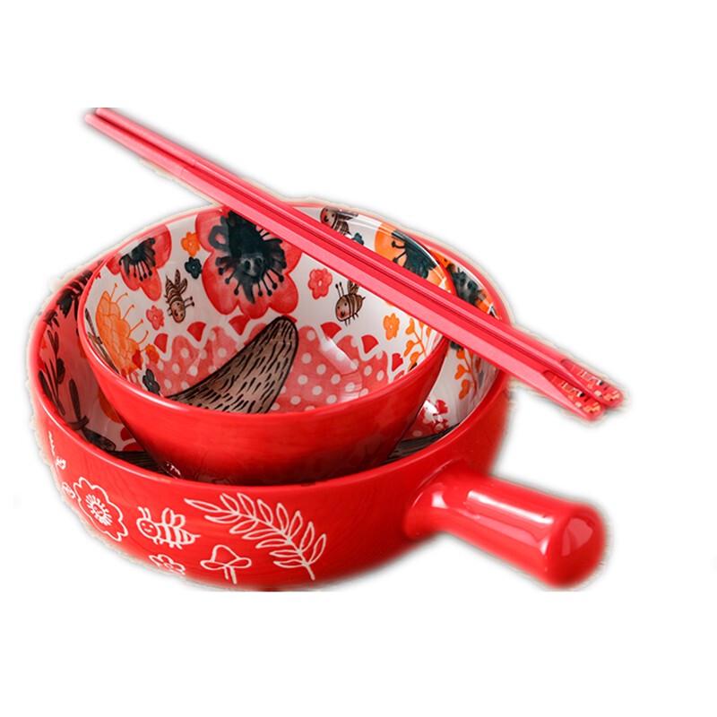 Kreatives Cartoon-Kaninchen-Griffschüssel- & Essstäbchen-Set
