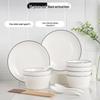 3pcs/set Vertical Stripes Black Tableware Set Plastic Plate/Bowl/Cup Durable Cutlery Set Outdoor