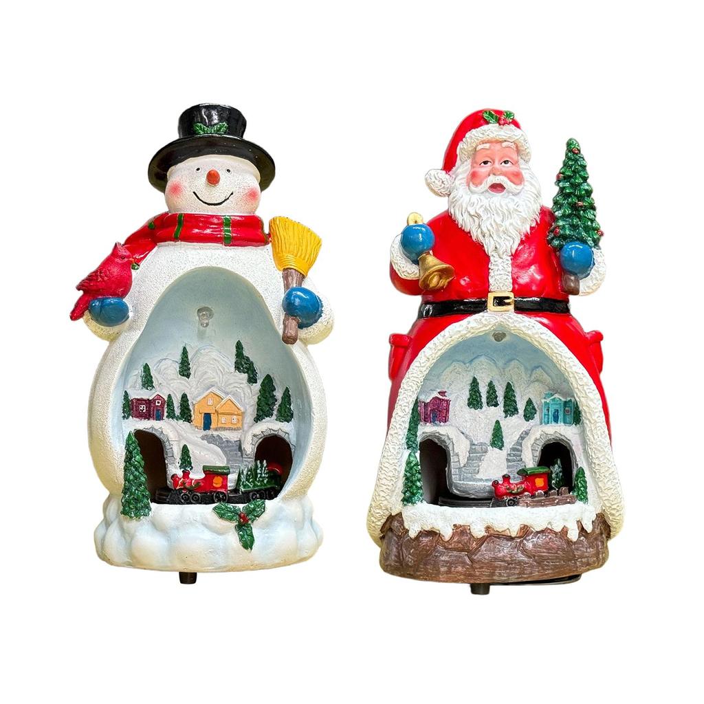 Christmas Figurine Resin Sculpture Festival Centerpiece Rotating Train Musical Decorative for Bookshelve Office Indoor Corner