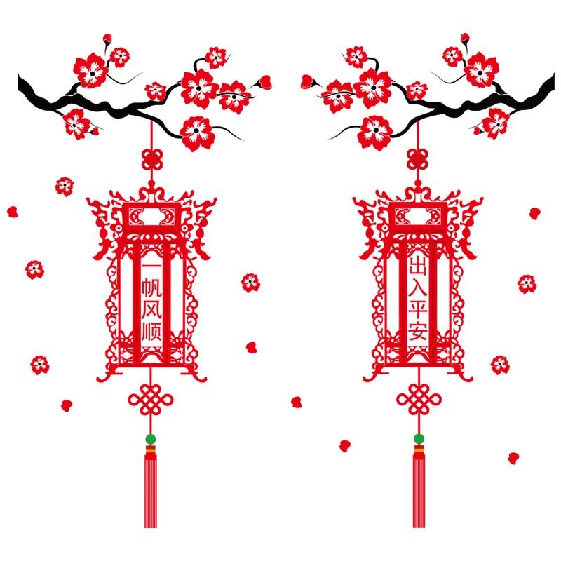 Chinese Lantern PVC Wall Stickers Red New Year Decorations Plum Blossom Window Sticker Home Decor Living Room Door Stickers