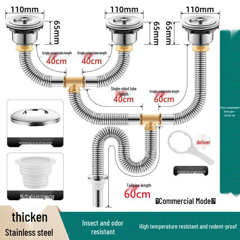 TLXT Gewerbliches Edelstahl-Spülbecken-Abflussrohr
