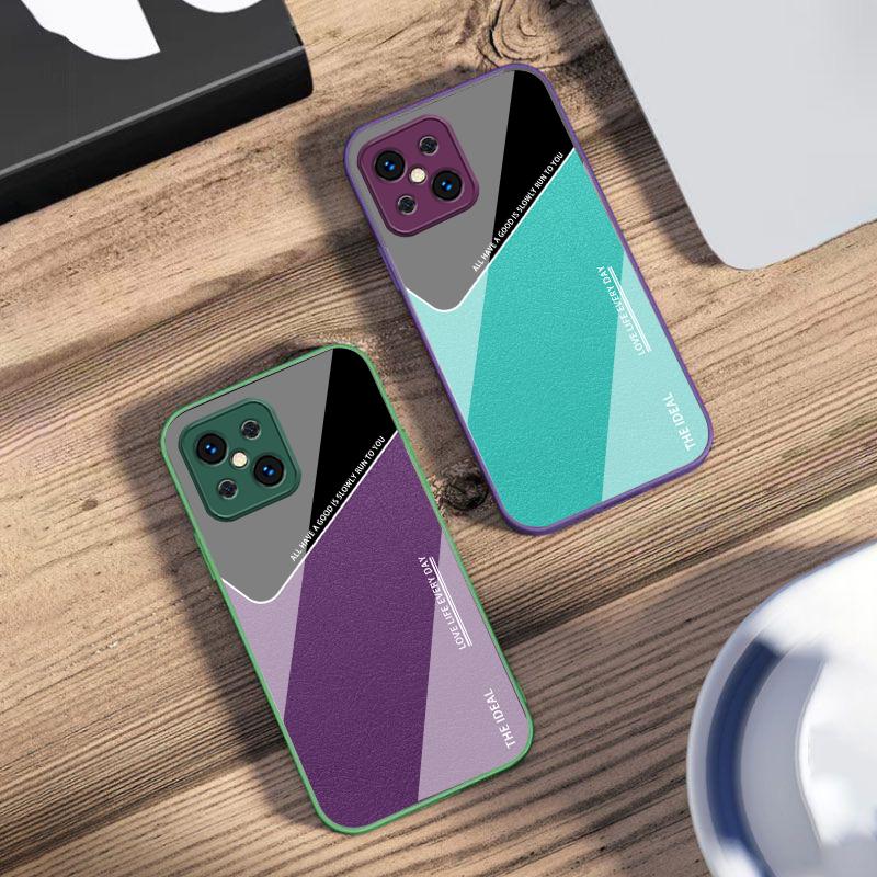 Leather Grid Element For Oppo Find X5 X8 Pro X3 Lite A72 58 73 54S F11 79 Reno 6 4Z 5G Nord N200 Tempered Glass Phone Case