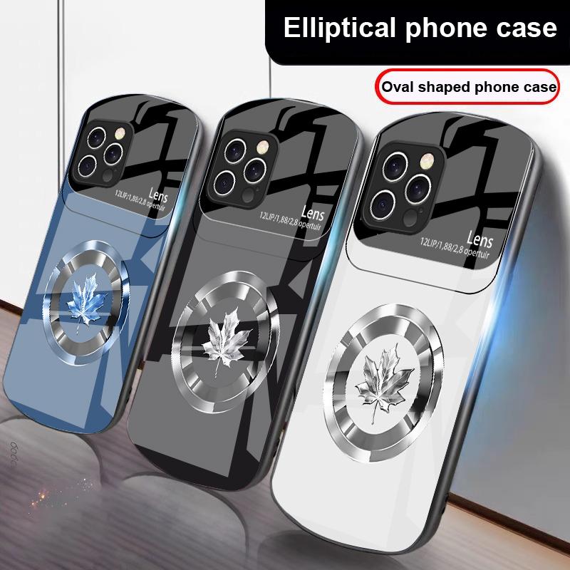 Kreis Ahornblatt Für IPhone 16 Pro Max 15 Pro 14 13 12 Mini 11 XS Max XR 7 8 Plus SE 2022 Elliptische Glas Handyhülle