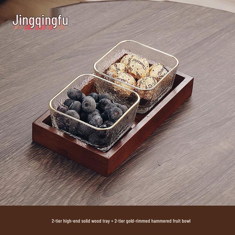 Jingqingfu gehämmertes Glas geteiltes Servierset mit Holztablett