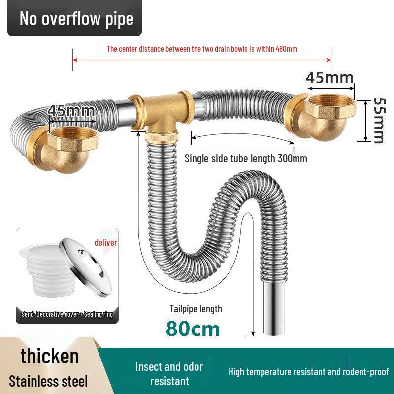 TLXT Double Sink Stainless Steel Drain Pipe Kit