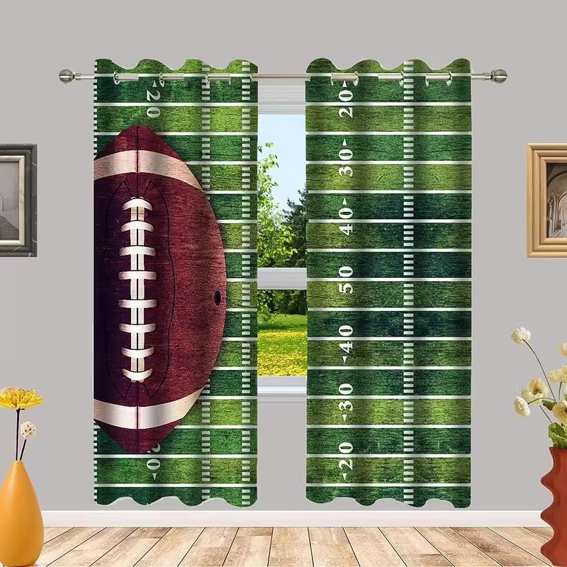 2 Stück Vorhänge mit American-Football-Print, geeignet für Schlafzimmer-, Wohnzimmer-, Küchen-Dekoration, Heimdekoration, Fensterdekoration