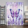 2 Stück lila Vorhänge mit Schmetterlingsdruck, geeignet für Schlafzimmer-, Wohnzimmer-, Küchendekoration, Heimdekoration, Fensterdekoration