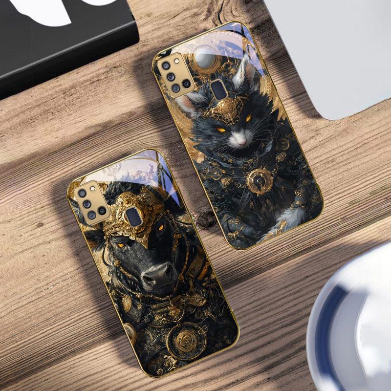 The Tiger of the Crown For Samsung A 31 32 A33 A34 35 14 A15 13 16 25 26 50 52 53 54 55 56 70 71 72 73 Golden glass phone case