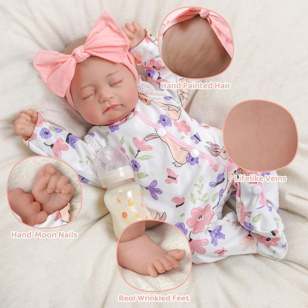 BABESIDE Reborn Baby Dolls - 17Inch Cute Soft Vinyl Realistic Baby Doll Girl Poseable Smiling Real Life Baby Dolls with Complete Accessories for 3+