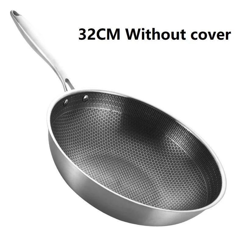 430 Stainless Steel Wok Skillet Thick Honeycomb Handmade Frying Pan Non-Stick Non Rusting Gas/Induction Cooker kitchen cook