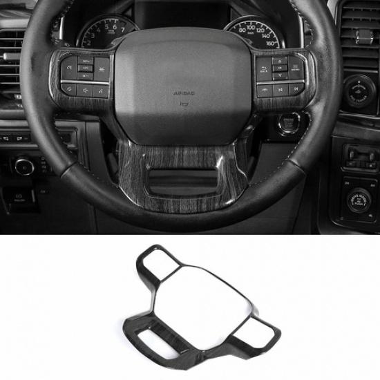 Steering Wheel Panel Cover Trim Accessories For Ford F150 2021+ Black Wood Grain