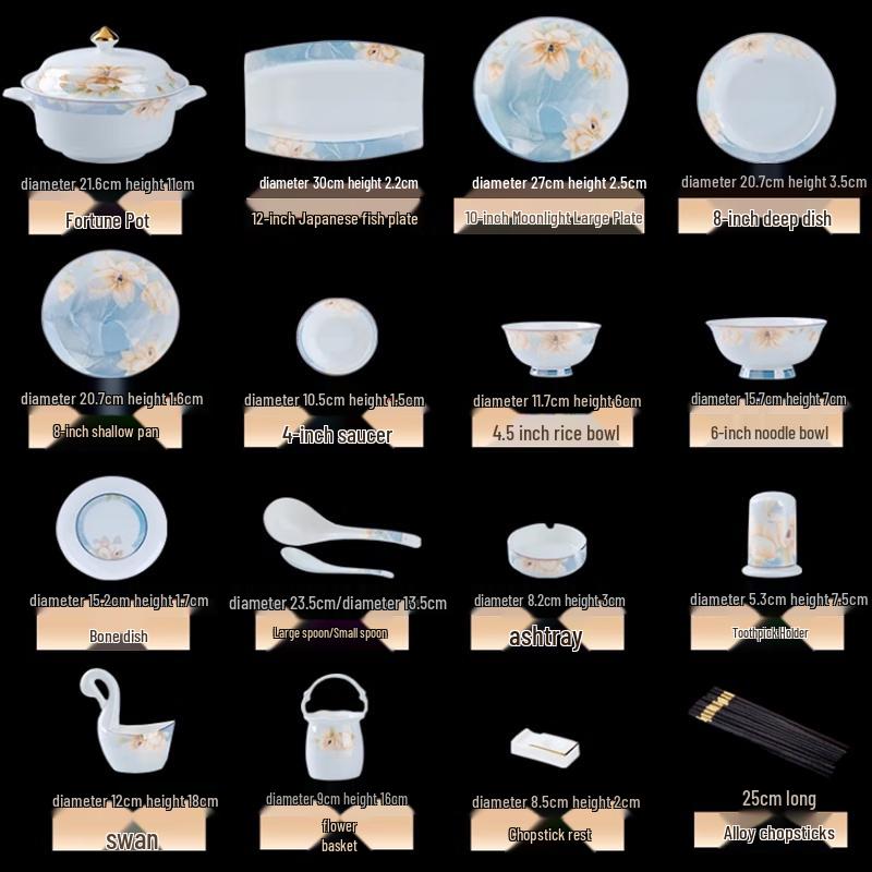 Tao Zhi Light Luxury Chinese Ceramic Dinnerware Set