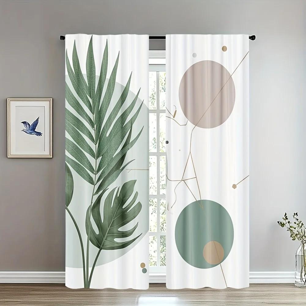 2pcs Exotic Tropical Leaf Curtains Room Darkening Drapes Living Room Decor Rod Pocket Curtains