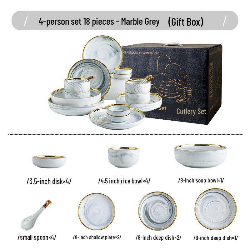 Jing Beier Nordisches Goldrand-Marmor-Keramik-Geschirrset