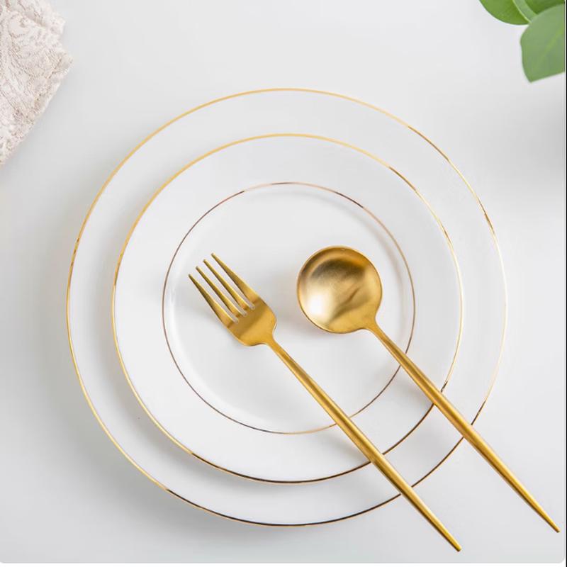 SIFAR Double Gold Rim Ceramic Dinner Plates