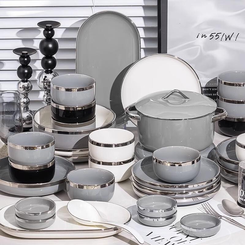 ModellGrau-Weißer Silberrand, 20-teiliges Set für 4 mit Suppenteller (Geschenkbox)
