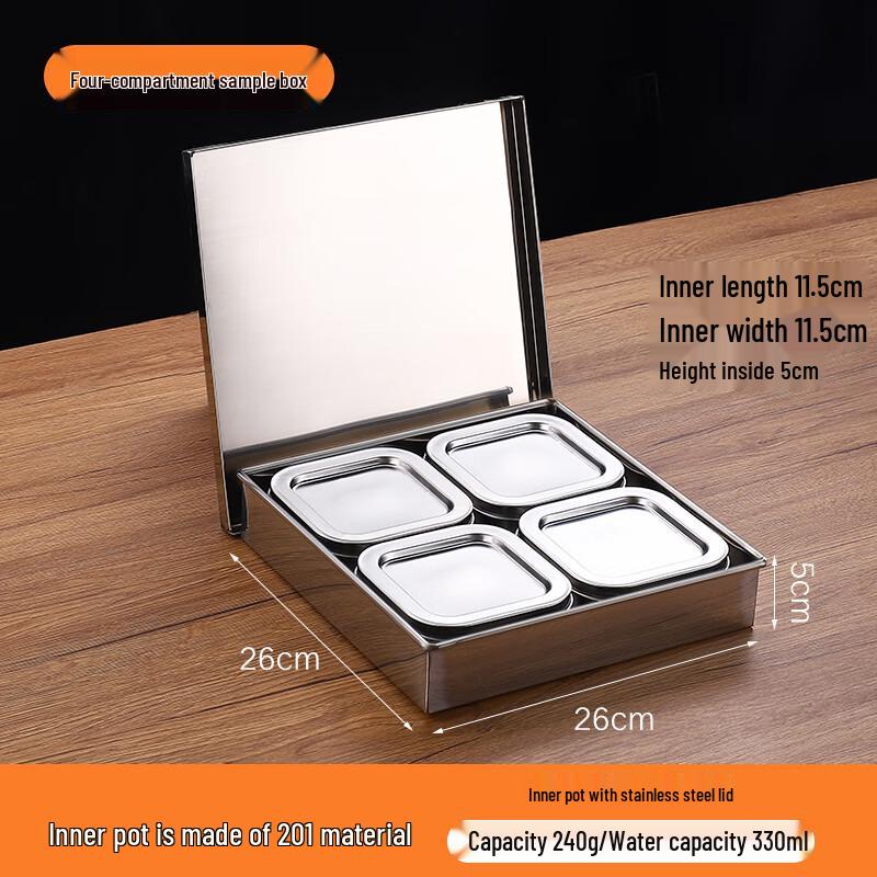 Square 4-Compartment Stainless Steel Food Sample Container Set