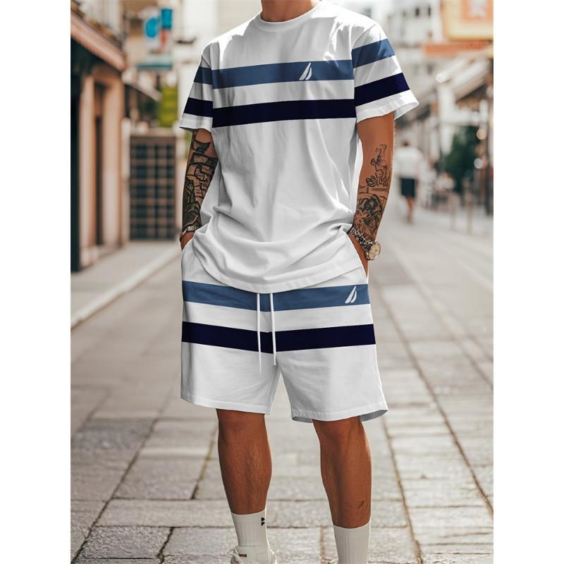 Summer Men's Short Sleeve Shorts Set Personalized Logo Printed Short Sleeve Shorts Set Loose Breathable Casual Fashion
