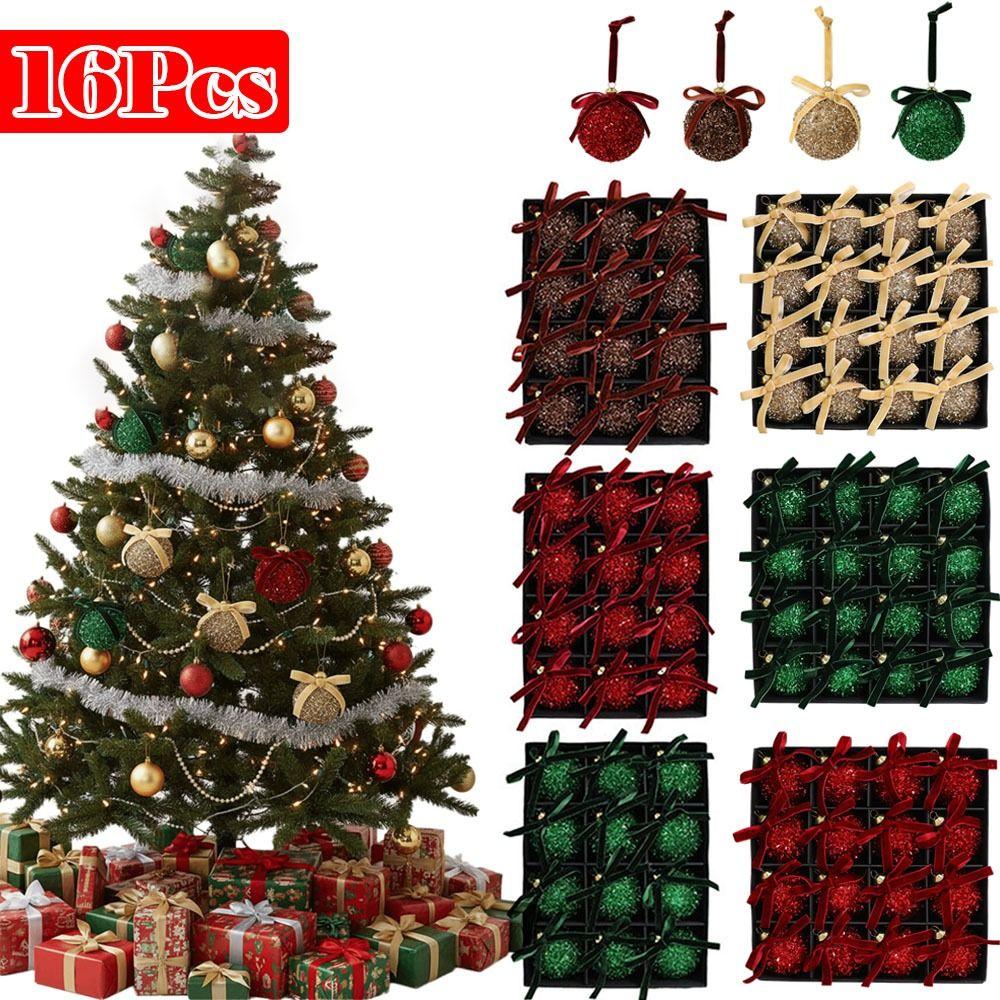 16Pcs Butterfly Bow Christmas Balls Round Christmas Hanging Pendant Christmas Tree Ornaments Gifts