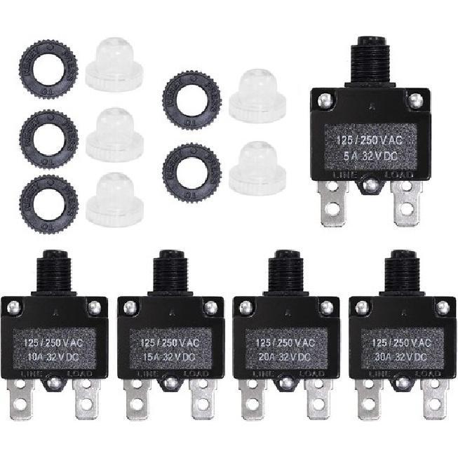 5PCS 5,10,15,20,30Amp Circuit Breakers with Manual Reset 32VDC,AC125-250V with Q