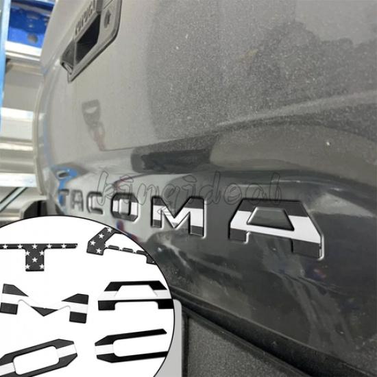 Tailgate Letter for Tacoma 2016- Nameplate 3D Black White US Flag Sticker