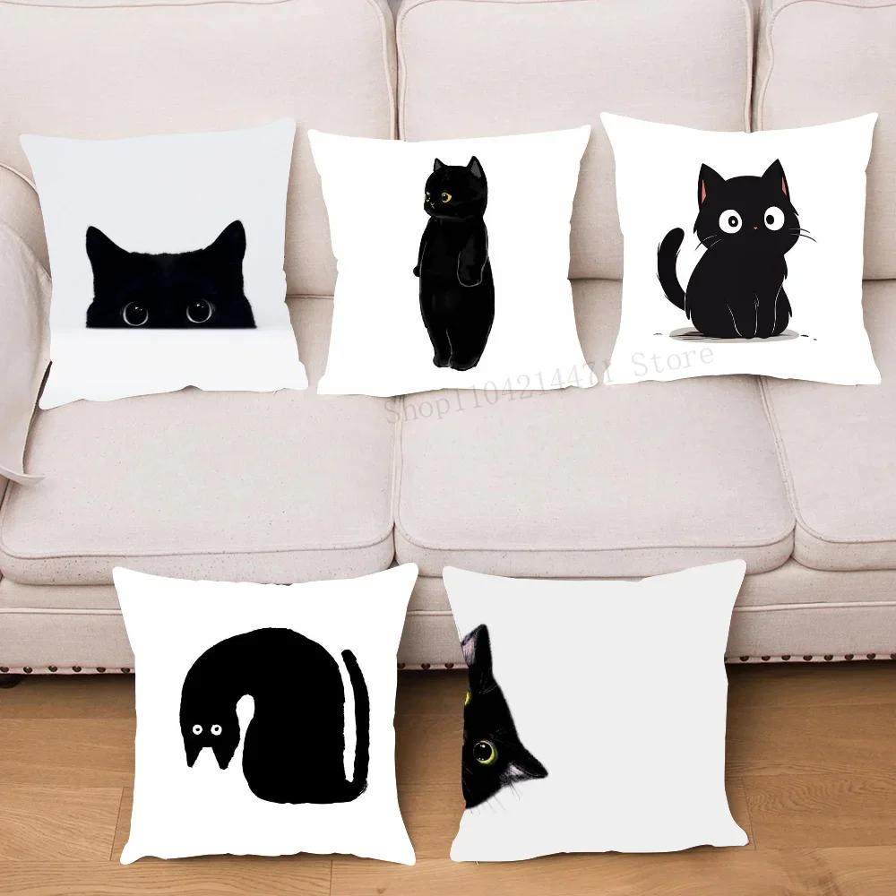 1 Stück Schwarze Katze Kissenbezug Quadratisch Schlafzimmer Sofa Freizeit Komfort Kissen Auto Wohnzimmer Heimdekoration