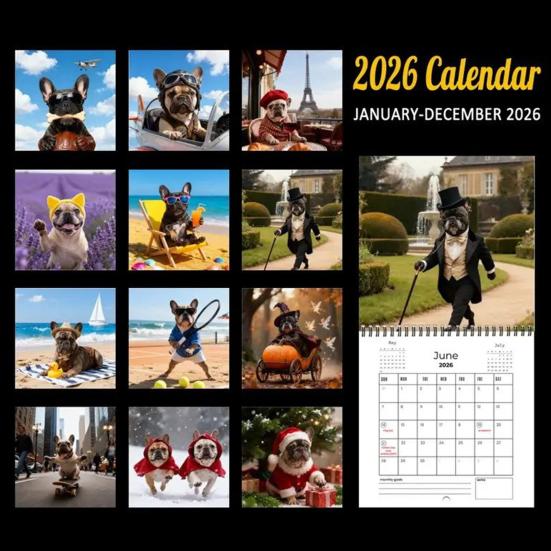 Französische Bulldogge Kalender 2026 Januar 2026 - Dezember 2026 12 Monatskalender Lustiger Frenchie Wandplaner für Zuhause Büro