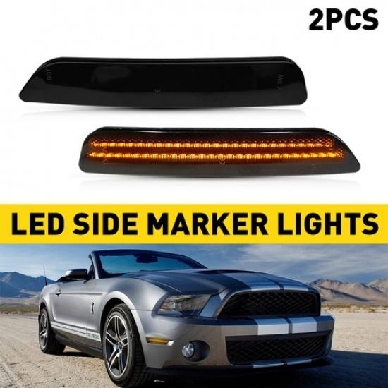 LED Front Bumper Side Marker Lights Smoked Lens Amber Fit 2010-2014 Ford Mustang