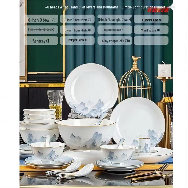 Qianxing Glazed Ceramic Dinnerware Set - 40 Pieces