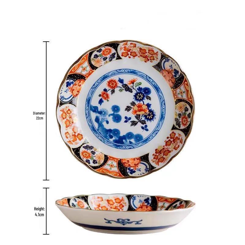 Yugudō Nishiki Ko-Imari 22cm Chrysantheme tiefer Teller