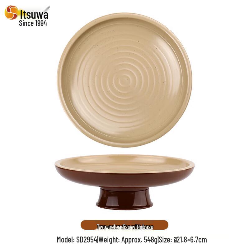 Retro Earthenware Style Melamine Round Plate with Base