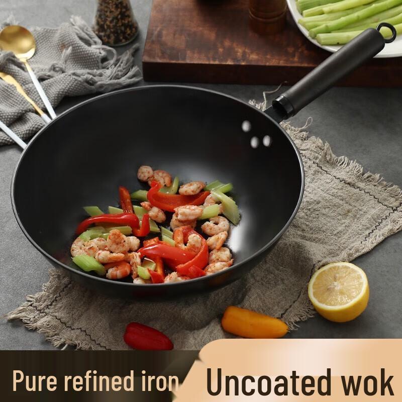 BAYCO 32CM Refined Iron Flat-Bottom Wok