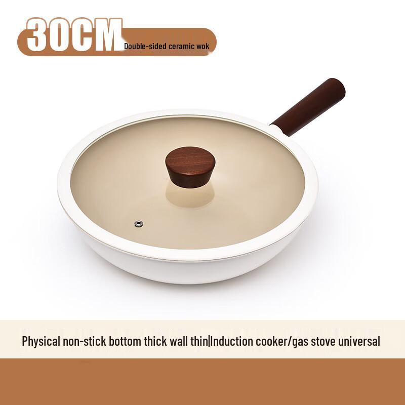 San Jiaolong 30CM Non-Stick Ceramic Wok with Wood Handle