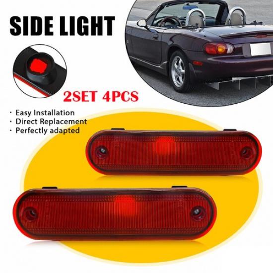 4X Rear Side Marker Light Red Lens LH+RH For 1990 91-04 2005 Mazda Miata MX-5 EA