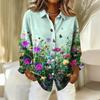 Damenhemd mit floralen Knöpfen, Langarm-Freizeit-Regular-Hemd Blusen Freizeit Übergröße Basic-Tops