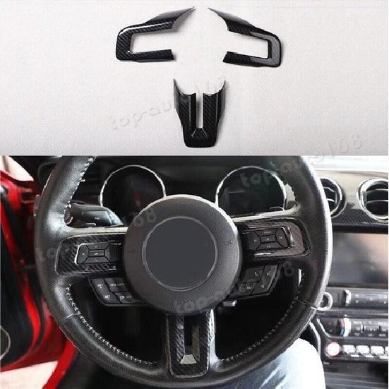 Carbon Fiber Look Steering Wheel Molding Cover Trim For Ford Mustang 2015-