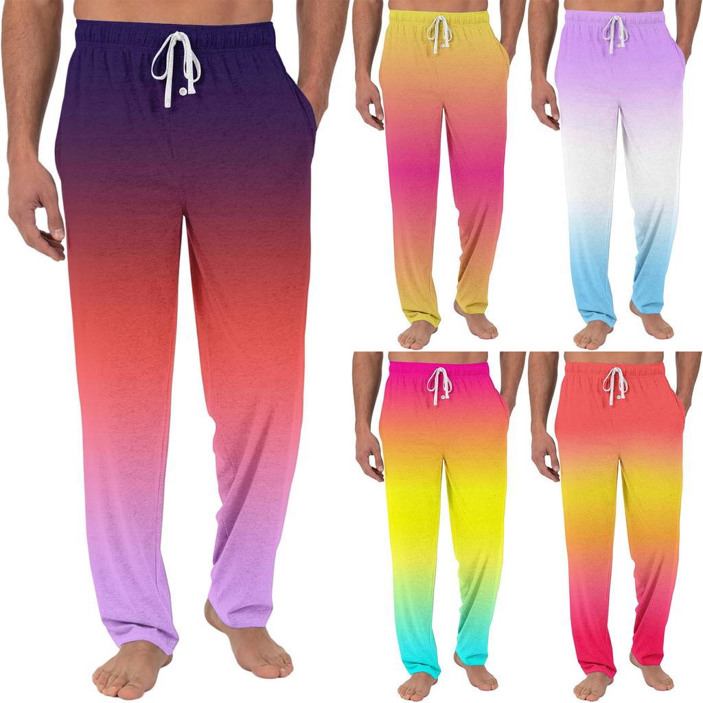 Herren Freizeit-Pyjamahose mit Taschen | Krawatte, Farbverlauf bedruckt, Leinwandbindung, lockere Passform elastischer Bund für Zuhause
