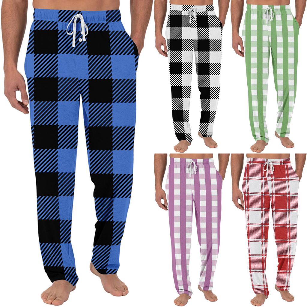 Herren Freizeit Pyjamahose mit Taschen | Einfarbig Gestreift Kariert Bedruckt Lockerer Schnitt Elastischer Bund für Zuhause