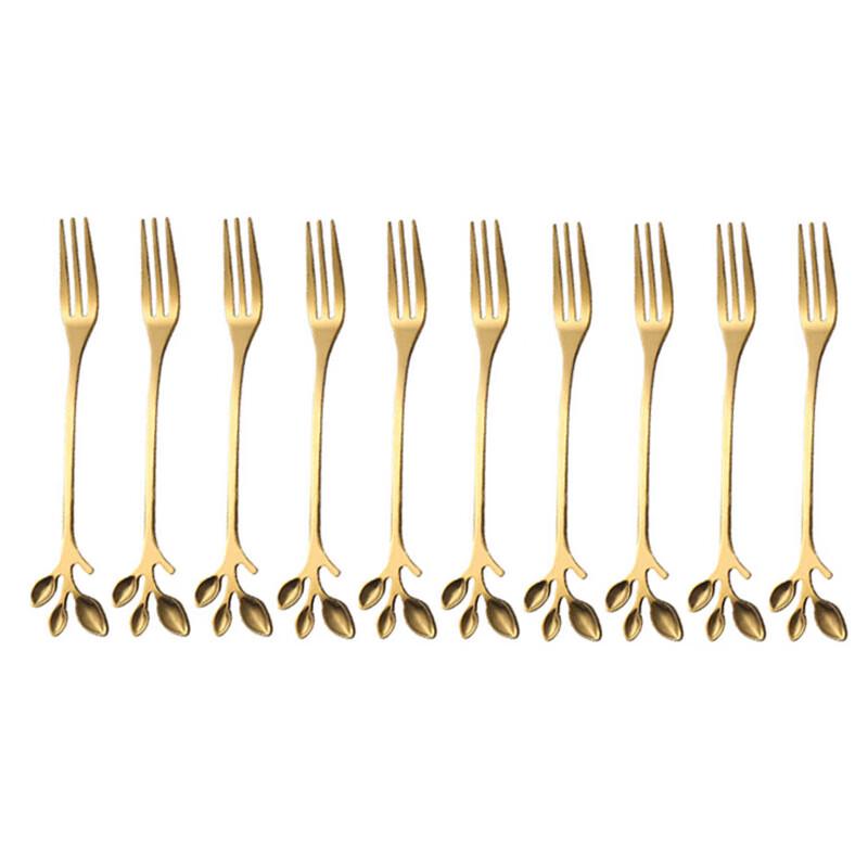 Wiederverwendbare Obstgabeln mit goldenem Blatt (10-teiliges Set)