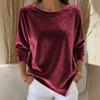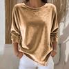 Damen Casual Rundhals Samt Farb Langarm Oberteil