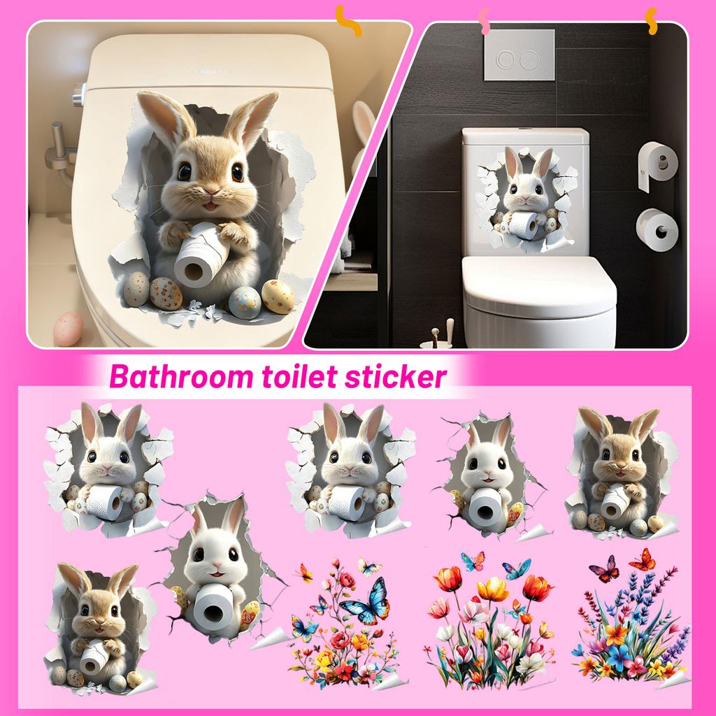 Floral,themed Bathroom And Toilet Stickers, Easter,themed Cute Bunny Self,adhesive PVC Decorative Stickers For Bedrooms.