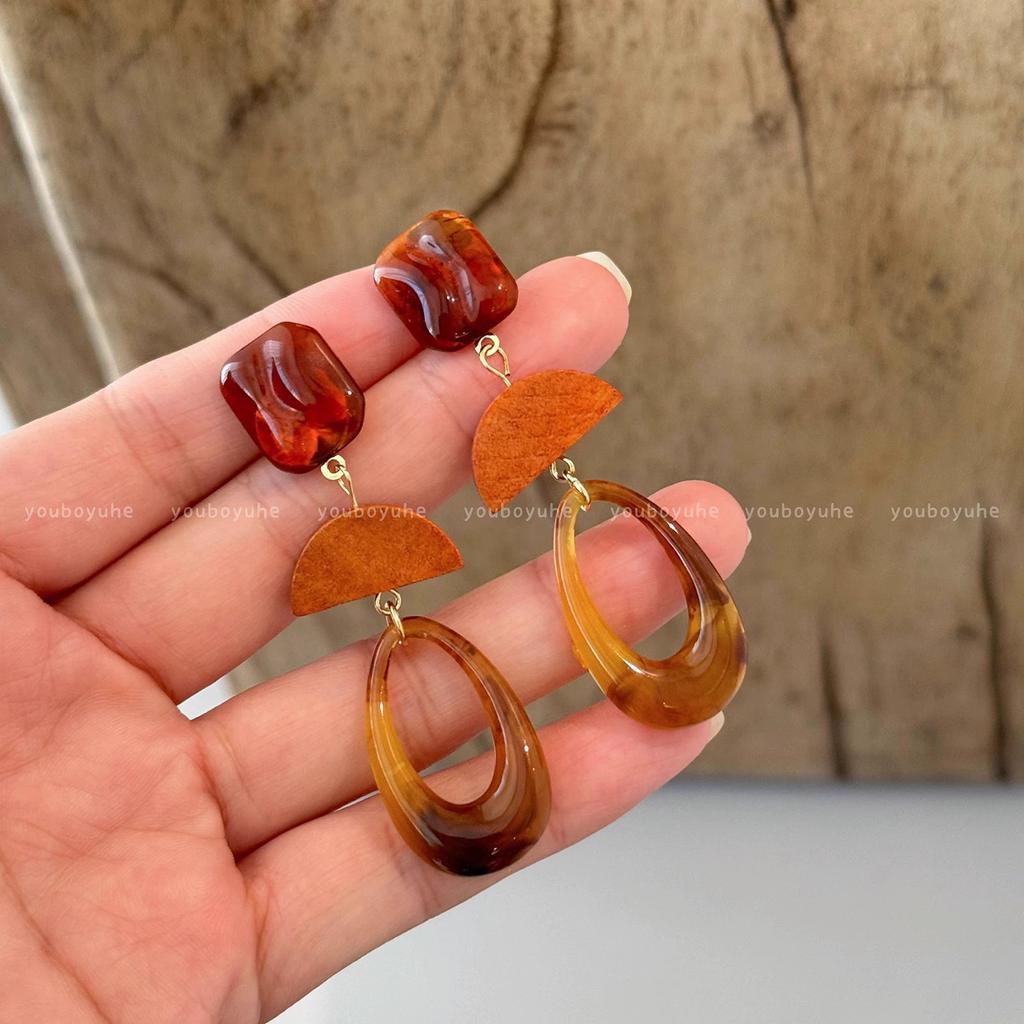 Maillard Retro Kaffee Geometrische Anhängerohrringe Damen Leichter Luxus Steckerohrringe Herbst und Winter Ohrschmuck
