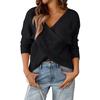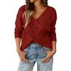 Women's Relaxed Patchwork V,neck Loose Long,sleeved Polyester Sweater
