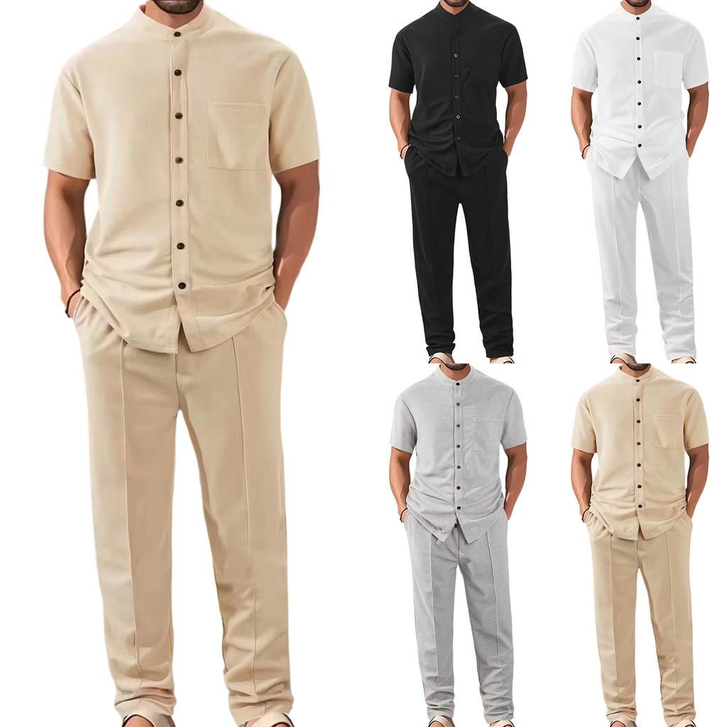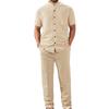 Men's Sports Leisure With Pocket Short Sleeves Shirt Trousers Set