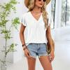 Modisches Damen Farb-Doppellagen-Ärmel V-Ausschnitt Locker Kurzärmliges T-Shirt Top