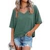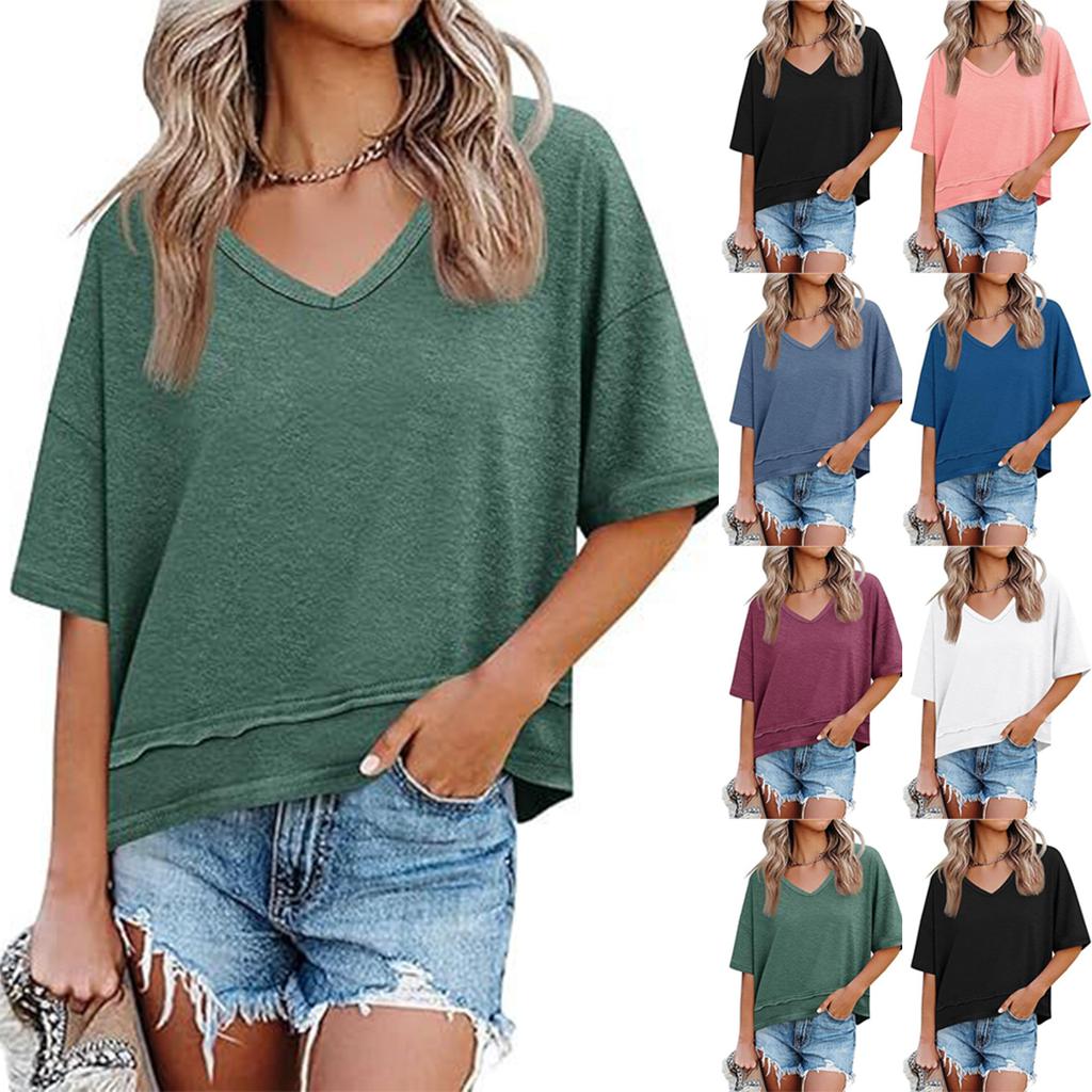 Damenmode Farbe V-Ausschnitt Mittellange Ärmel Saum-Patchwork Locker T-Shirt Top