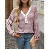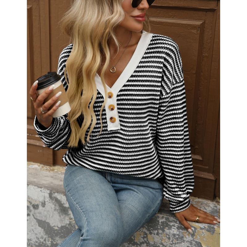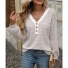 2025 New Women's V-neck Button Pullover Splicing Casual Long-sleeved Color-blocked T-shirt