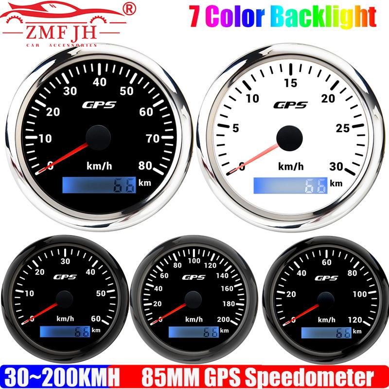 ZMFJH Auto Car 85MM GPS Speedometer Gauge with Antenna 7 Color LED Odometer Mileage 30-200KMH Speed Meter Marine Boat Waterproof