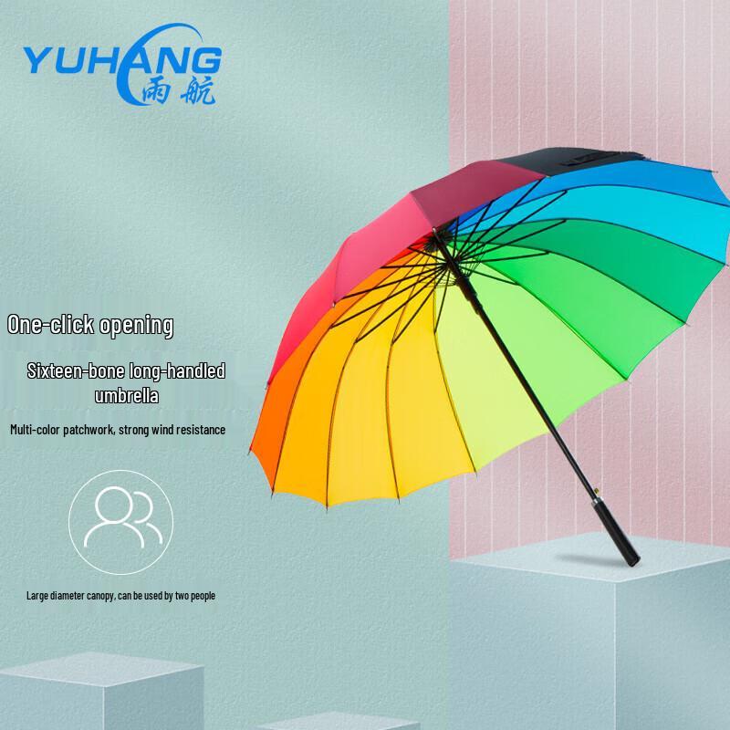 YUHANG 16-Rib Rainbow Semi-Automatic Straight Umbrella